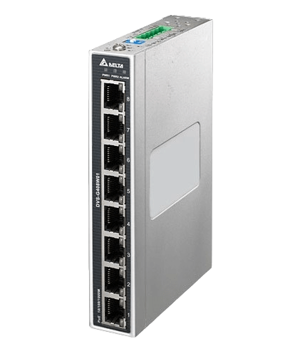 Switch Ethernet industrial DVS series, modelo DVS-G408W01 marca Delta Electronics.